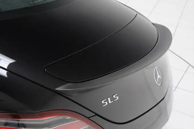 Внешний вид суперкара облагорожен аэродинамическим обвесом, все элементы которого выполнены из легкого углеволокна. В обвес для SLS AMG вошли