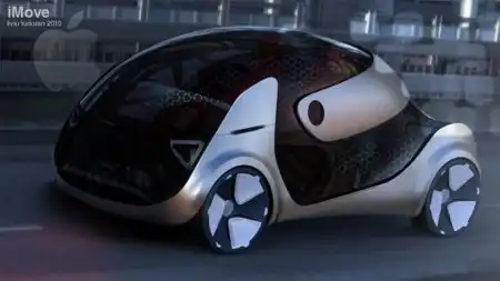 Итальянский дизайнер-креативщик Ливиу Тудоран создал концепт автомобиля от компании Apple. Недолго думая автор дал имя своему детищу – iMove. Внешний вид Эпл-электромобиля напоминает обычную компьютерную мышь от Macintosh. Большая часть корпуса агрегата состоит из прозрачных материалов, которые являются еще и одной большой солнечной панелью, задняя часть выполнена из текстильной светонепроницаемой ткани, которая надежно удерживает багаж.
