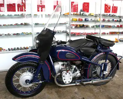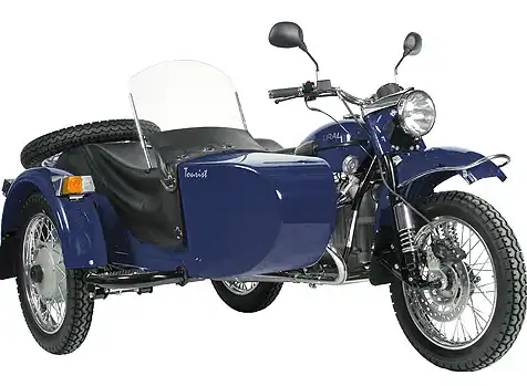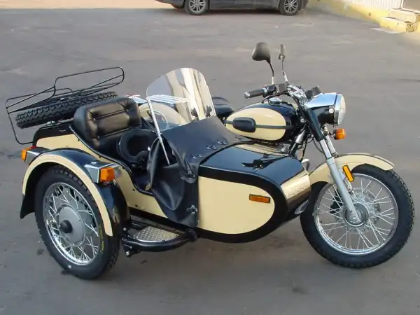 В комплектацию входит дополнительное оборудование: Хромированный багажник на колесо коляски, фара-искатель, грязезащитные щитки водителя, стекло на коляску, лопатка, канистра, хромированная защитная дуга водителя, хромированная защитная дуга коляски