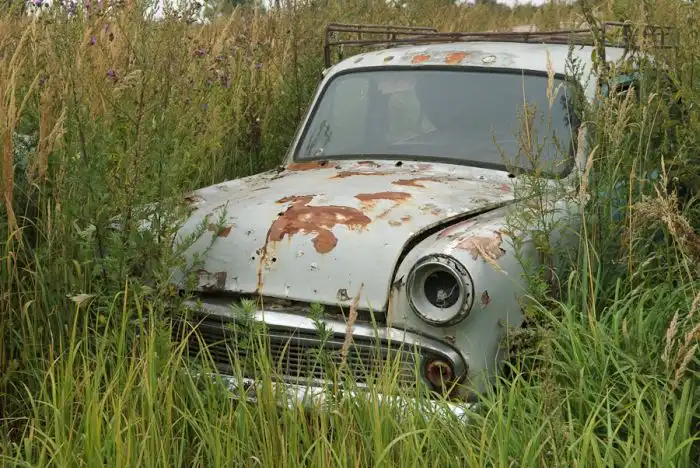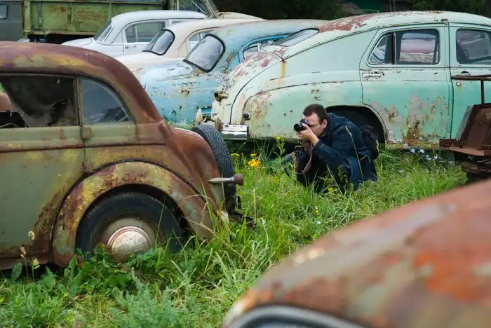Недалеко от деревни Черноусово в Тульской области находится поле, на котором стоит множество старых автомобилей.