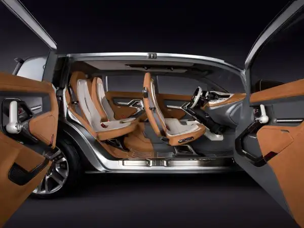 Двери у Granite распашные, без средней стойки, что облегчает посадку-высадку. Ярким и самобытным получился именно интерьер концепта, выполненный в трех основных цветах. Переплетение прямых линий и довольно простых форм образуют интересные композиции и переплетения. Салон имеет возможности для трансформации – желающие смогут с легкостью перевезти какой-нибудь спортинвентарь.