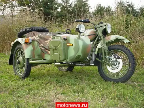 Что касается непосредственно военизированных особенностей этой модели, то в комплект с мотоциклом также входит и полезное дополнительное оборудование – мощная фара-искатель, саперная лопатка, 10-литровая канистра, защитные дуги для водителя и коляски, а также грязезащитные щитки для водителя и специальный компактный багажник для коляски. Также стоит отметить качественный непромокаемый чехол для всего мотоцикла и удобную переднюю вилку (рычажную, с высоким щитком). Покупателям предлагается несколько вариантов раскраски на выбор: Хаки, Африка, НАТО, городской камуфляж.