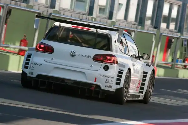 Volkswagen решил принять участие в 24-часовой гонке в Нюрбургринге (шоу пройдет с 23 по 26 июня). И специально для этого события немцы построили уникальный Golf, который получил название Golf24.Эта машина оснащается мотором объемом 2,5 л с турбонаддувом, который выдает аж… 440 л.с. и 540 Н•м. В паре с этим «зверем» будет трудиться шестиступенчатая коробка с подрулевыми переключателями, привод, разумеется, полный.Интересно, что в прошлый раз Volkswagen выпускал Golf на 24-часовую гонку в Нюрбургринге в 2007 году. Однако тогда хэтчбек имел мотор мощностью «всего» 300 л.с., а привод был лишь на переднюю ось (с 2008 по 2010 годы в гонке был представлен Scirocco). В 2007 году 300-сильный Golf пришел к финишу лишь восьмым в общем зачете, но с новой машиной немцы хотят выступить значительно успешнее.