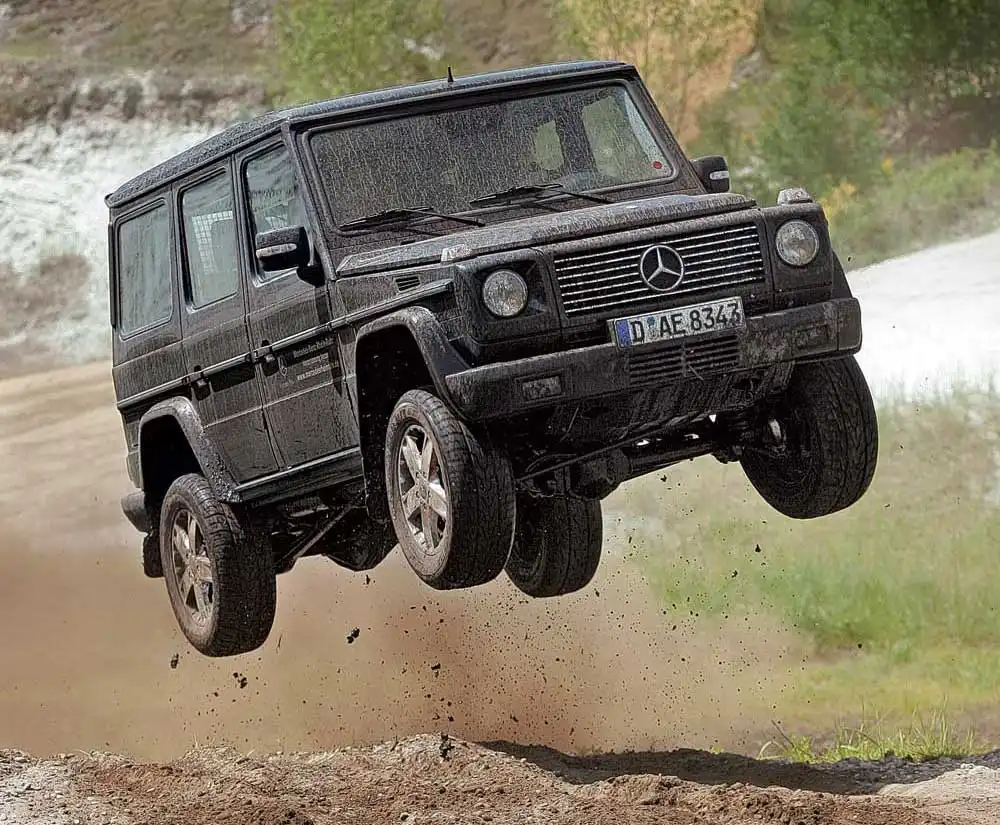Тем не менее, дебилам за руль Гелендвагена всё же лучше не садиться, ибо арсенал из трёх диффлоков и противобуксовочной системы следует юзать с умом, в зависимости от внедорожных условий. Зато в случае наличия работающего моска, автомобиль превращается в танк.