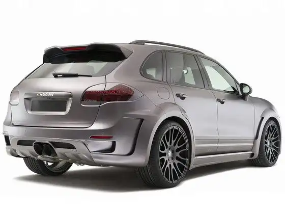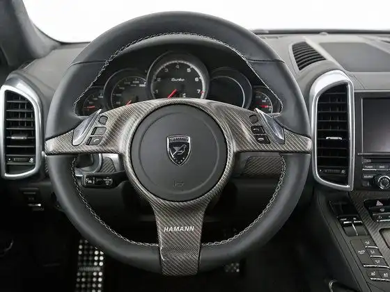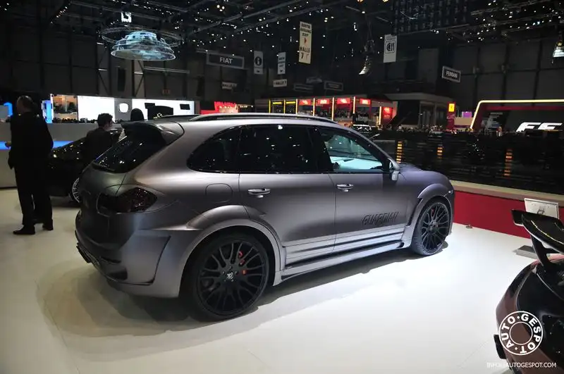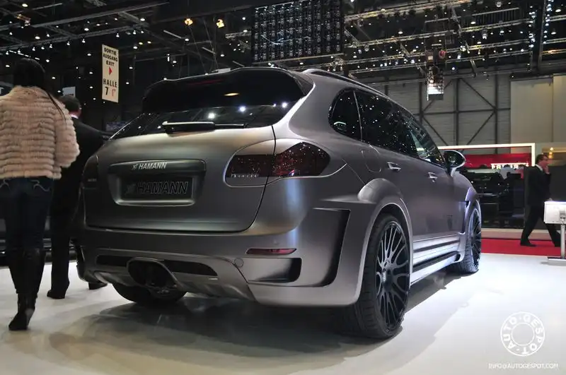 Нельзя сказать, что Porsche Cayenne второго поколения, которого инженеры Hamann превратили в Guardian, и в стоковом варианте отличается дружелюбной внешностью. Машина напоминает эдакого многоборца, который и стометровку пробежит быстрее всех и на борцовский ковер выйдет не задумываясь. Но дизайнеры Hamann решили добавить машине еще больше брутальности. Теперь это уже не спринтер, а скорее боец чемпионата К-1. Суровый и мужественный внешний вид машине придает серый, матовый окрас и новый карбоновый обвес – массивный передний бампер с противотуманками и светодиодами дневного света, капот с вентиляционными прорезями, призванными улучшить охлаждение моторного отсека, задний диффузор, спойлер над пятой дверью, новый задний бампер со сдвоенными патрубками выхлопной системы, а так же расширенные колесные арки из-за чего ширина машины увеличилась на 120 мм спереди и 160 мм сзади. «Обут» Hamann Guardian в 23-дюймовые кованые диски и низкопрофильную резину Dunlop Spot Maxx размерностью 315/25. Попутно инженеры снабдили внедорожник карбоновыми 420 мм тормозными дисками с шестипоршневыми суппортами спереди и 380 мм дисками с четырехпоршневыми суппортами сзади. Так же на 35 мм был уменьшен клиренс. Салон отделали черной кожей и украсили карбоновыми вставками. Дополняют картину новый руль и алюминиевые педали, которые могут быть черными, анодированными или обычными. Само собой, не обошлось и без «ревизии» подкапотного пространства. Благодаря установке новой выхлопной системы из нержавеющей стали, спортивных катализаторов и воздушных фильтров, глушителя и перепрограммирования блока управления двигателем, мощность 4,8 литровой турбовосьмерки была повышена с 500 л.с. (700 Нм) до 550 л.с. и 770 Нм. Все это не замедлило сказаться на динамических характеристиках. По сравнению с Porsche Cayenne Turbo максимальная скорость выросла с 278 до 300 км/ч, а вот разгон до первой сотни уменьшился всего на 0,1 с (4,6 c). Интересоваться ценой «прокачанного» автомобиля бессмысленно. Немцы традиционно её скрывают, по-видимому, предпочитая обсуждать ценник напрямую с клиентами, а не с разного рода зеваками, коих полно на любом автосалоне. Поэтому остается только догадываться, во сколько Hamann оценит своего «Стража». Учитывая культовый статус ателье, сумма, наверняка, будет весьма немаленькой.