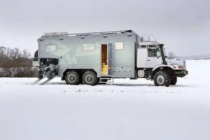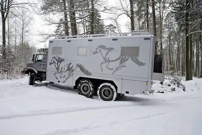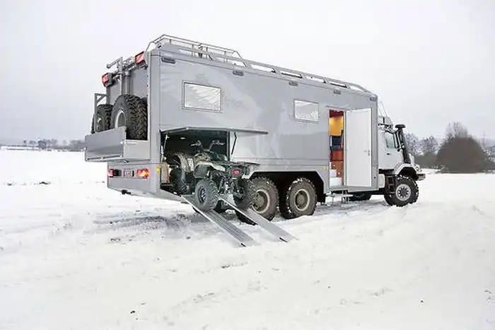 Как вам такой транспорт для охоты? В нем есть, душ, огромная кровать и кухня.