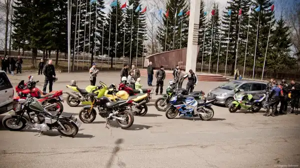 Примерно в 12.30 организованная мото колонна в сопровождении машины дпс выдвинулась к месту встрече с Томскими байкерами ( центральное кпп )