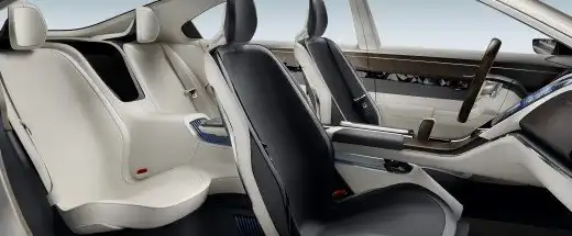 Интерьер выполнен по тем же принципам: простые линии сочетаются с необычными, изысканными материалами отделки. Руль и рычаг переключения передач украшены росписью, задние кресла «перетекают» в панели дверей.
