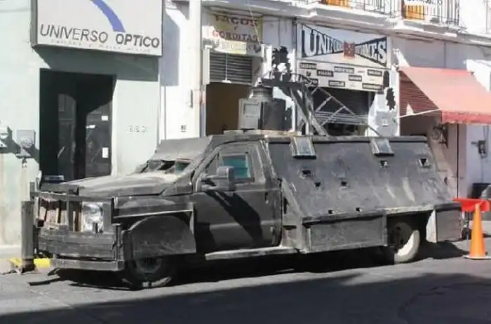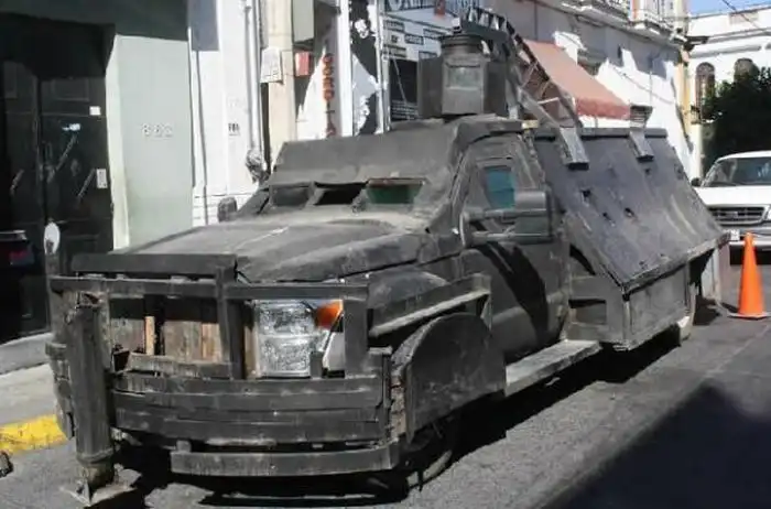 За последнее время это уже вторая "добыча" мексиканских стражей порядка. Данный экземпляр был построен на базе "тяжелого" пикапа Ford F-серии Superduty. В нем могут разместиться 10 вооруженных парней и довольно долго держать оборону. Имя такому транспортному средству дали соответствующее - El Monstruo. Примечательный факт - максимальная скорость "монстра" составляет около 110 километров в час!