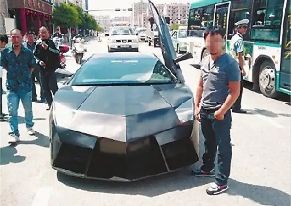 Помните китайского парикмахера-сварщика, который при бюджете 14 000 долларов смог создать копию суперкара Lamborghini Aventador использовав шасси японского седана Nissan Bluebird. Спустя месяц его проект был закончен на 95%, автомобиль покрасили в черный цвет и оснастили оптикой, не хватало лишь внутренней отделки. И вот владелец решил прокатиться на своем детище по улицам города, но поездка была быстро пресечена полицейским, а автомобиль был отправлен на штрафплощадку. Дело в том, что автомобиль в документах был прописан как Bluebird , но в реальности был на него совершенно не похож. К тому же на машине отсутствовали номерные знаки. В итоге полицейские приняли решение конфисковать автомобиль у владельца и выписали ему штраф в 500 юаней (2200 рублей), так же он должен будет восстановить первоначальный облик автомобиля в соответствии с документами.