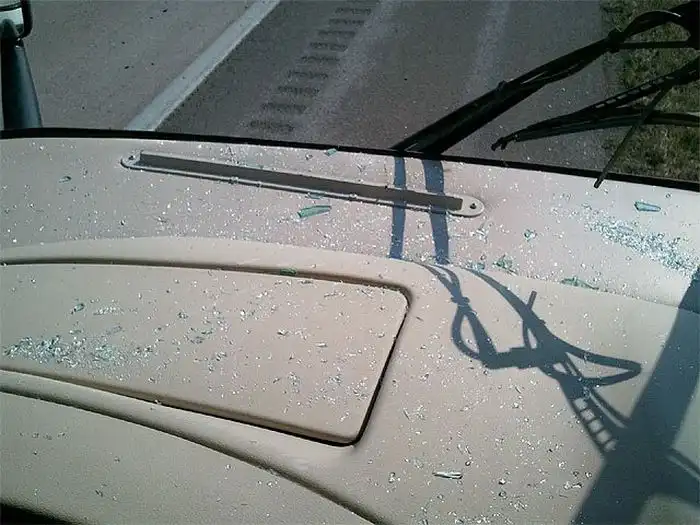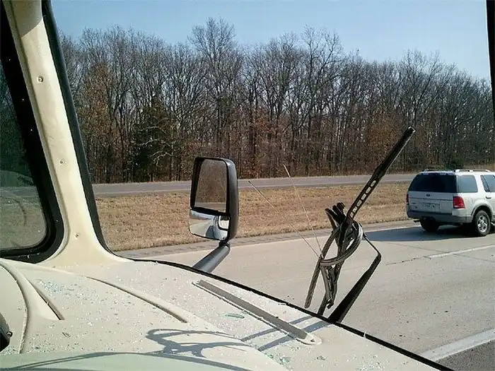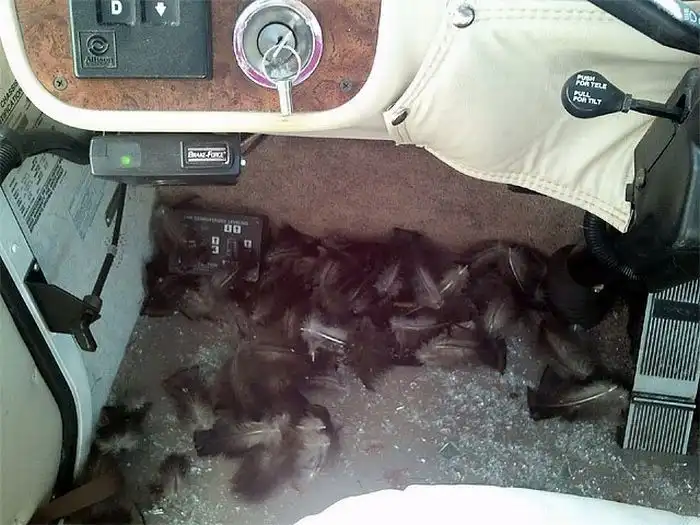 Семейная пара Кен и Ким Стич отправились путешествовать на "доме на колесах", спустя 6 часов проведенных в дороге, случилось невероятное. Дикая индейка прилетела в лобовое стекло автомобиля, пробила его и залетела в салон. Последствия смотрите на фотографиях.