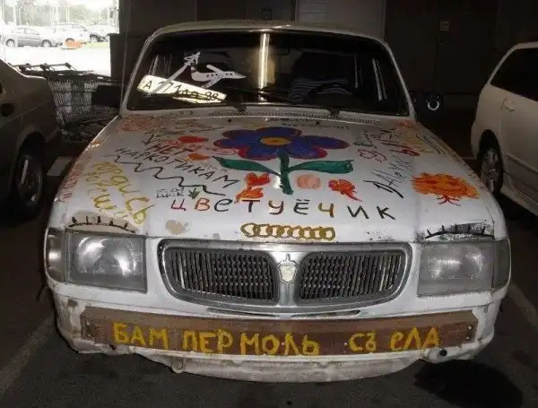 Автомобиль Волга как способ самовыражения. Забавно почитать надписи :)