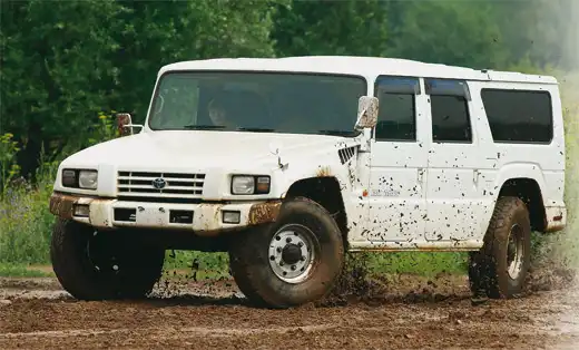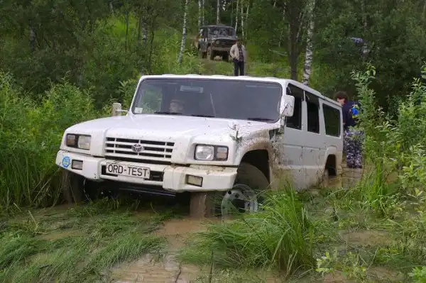 Поскольку основное предназначение этого автомобиля – передвижение по каменистой местности со сложными рельефами, для него крайне важен не только дорожный просвет, но и ходы подвески. Подвеска всех колес независимая торсионная. Размер деталей ходовой части такой, что ими можно выкорчевывать камни без особого риска что-либо повредить.