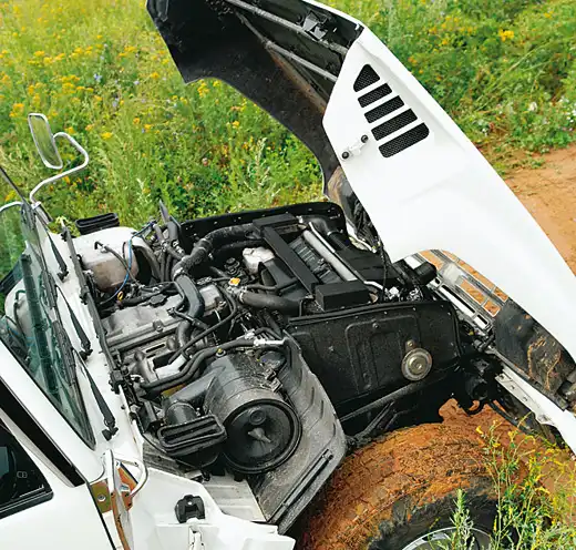 относится к «тойотовскому» семейству В, известному уже лет тридцать. Он с интеркулером и оснащен штатным турботаймером. Воздухозаборник мотора расположен в выемке на боковой части капота. А дальше идет система многочисленных сифонов, так что схватить гидроудар трудно – допустимая глубина преодолеваемого брода 1200 мм.