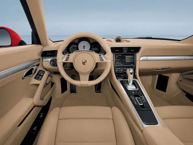 Интерьер 2012 Porsche 911 буквально в деталях срисован с четырехдверного купе Panamera. В салоне присутствуют все тот же трехспицевый руль с лепестками, щиток приборов и центральная консоль, где только увеличилось число кнопок.