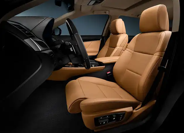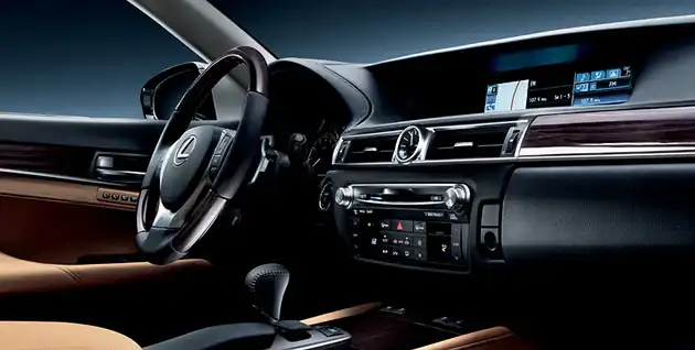 Интерьер GS 350 имеет мало общего с предыдущим поколением. Внутри салон выполнен, скорее всего, в стиле спорткара LFA. На центральной консоли разместили 32-сантиметровый сенсорный дисплей. Лаконичные формы, ровные швы кожаной обивки и минимум посеребренной пластмассы призваны обеспечить максимум комфорта. Пассажиры могут насладиться звуком аудиосистемы Mark Levinson с 17 динамиками, а через мультимедийную систему легко узнать цены на бензин на ближайших заправках или пообщаться в социальных сетях.