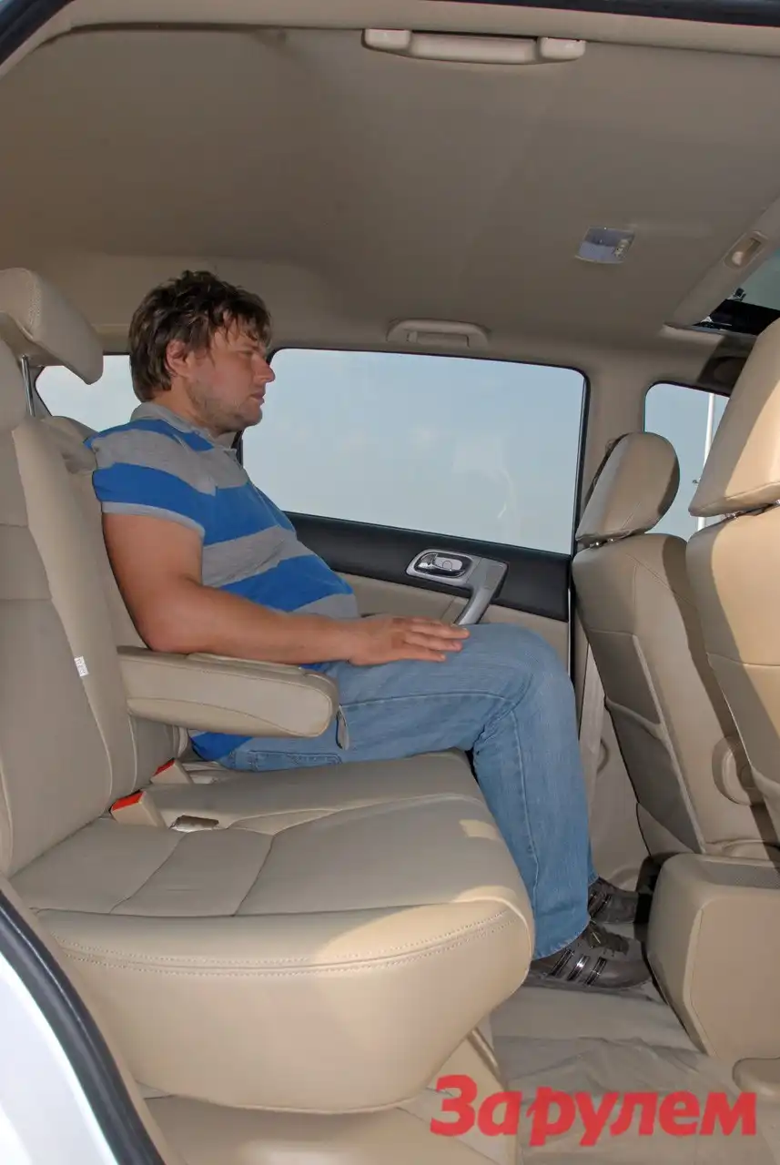 Удобно и просторно на заднем диване: можно легко закинуть ногу на ногу! К тому же регулируется спинка, разрезанная на две неравные части. Сам диван можно сложить, откинув вначале подушку, а затем послав ей спинку вдогонку, – и тогда образуется приличных размеров площадка под негабаритный груз.