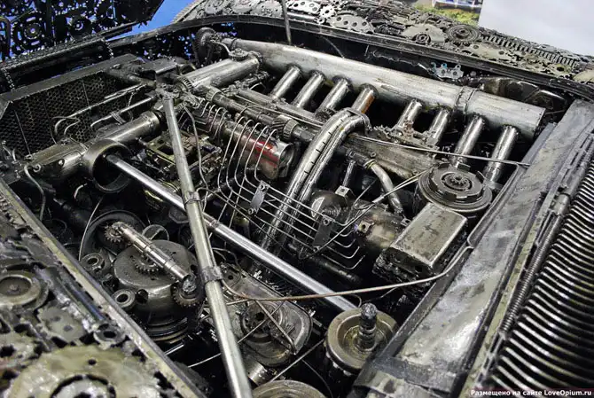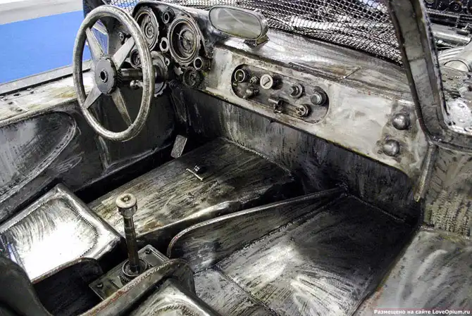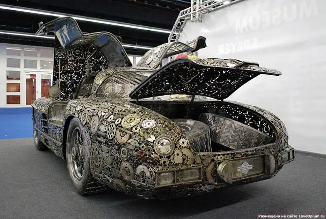 Это художественное произведение было собрано из металлолома и представляет собой полномасштабную копию знаменитого автомобиля Mercedes-Benz 300SL «Gullwing» («крыло чайки»).