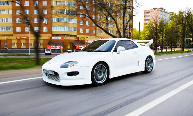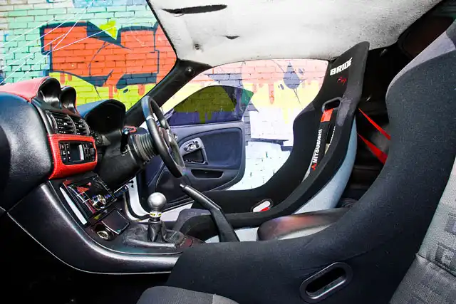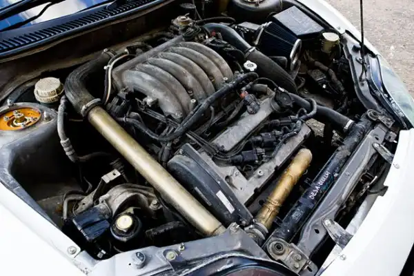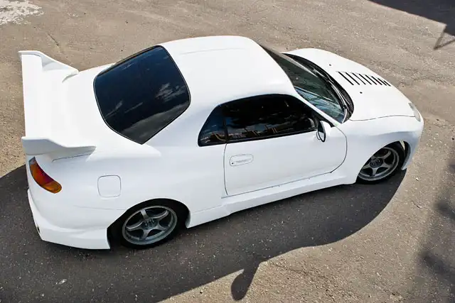 Однако основная «фишка» проекта заключается вовсе не в wide-body обвесе. Точнее не только в нем. Под капотом FTO отнюдь не тот мотор, с которым машина выехала с завода, а двигатель от Mitsubishi Legnum. Основные требования к кандидатам на SWAP были стандартными: мощность свыше 250 л.с. (стандартный мотор FTO выдает 200 «лошадей»), возможность дальнейшего форсирования и минимальные сложности при установке. Мотор от «Легнума» подошел по всем параметрам – V-образная «шестерка» с двумя турбинами и мощностью в 280 лошадиных сил, которая, к тому же, встает на родные крепления двигателя. Единственным конкурентом по мощности является 4g63T от Evo, но он на порядок дороже и сложнее в установке. Остальные двигатели, которые реально установить под капотом FTO без теплой дружбы с болгаркой не мощнее 250 л.с., а затевать сложный и дорогостоящий процесс замены мотора ради прибавки в 50 «лошадей» вряд ли кто-то захочет.