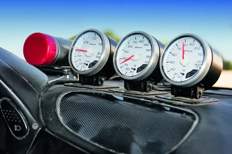 * Дополнительные приборы: Defi (температура воды, температура масла, давление турбины), Blitz (давление топлива, температура выхлопа) и AEM A/F-meter
