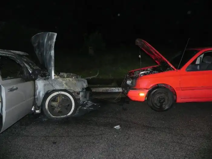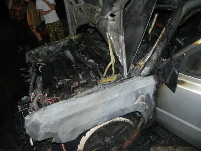 Товарищ пришел на выручку, когда у его друга сел аккумулятор. Он хотел дать "прикурить" от своего. Подогнали машину, открыли капоты и.... случайно соединили минус с плюсом. Итог - короткое замыкание и взрыв. Будьте внимательны, если окажетесь в такой ситуации.