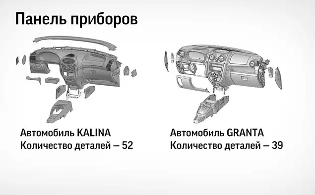 В обшивке дверей «Калины» используется 15 деталей, в «Гранте» – три.