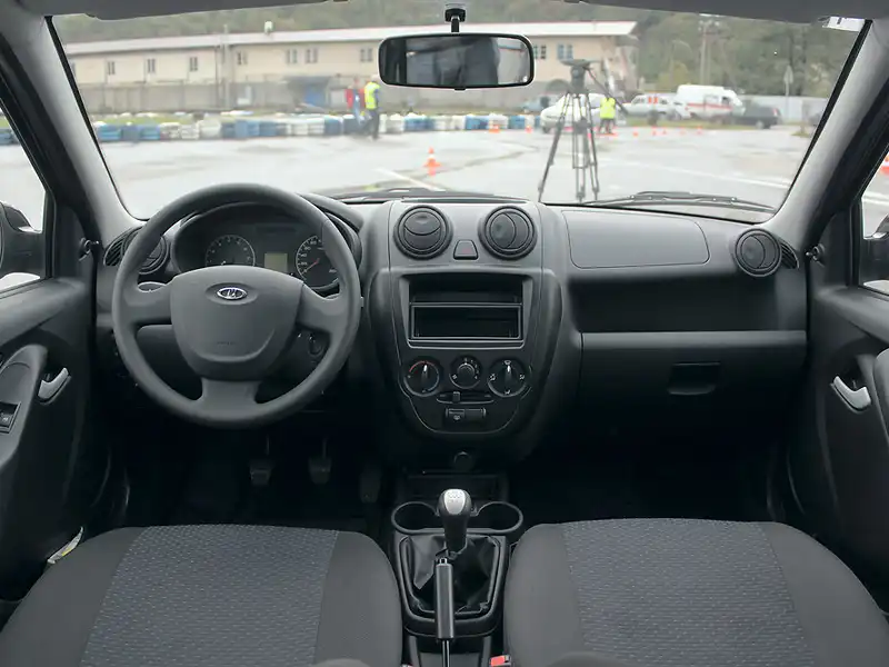 Посадка за рулем по-прежнему вертикальная. Сохранились и некоторые эргономические недочеты, вроде ограниченного диапазона регулировки рулевой колонки по наклону – ведь это узел практически без изменений достался от «Калины». Зато появились новые сиденья с иной геометрией спинки и подушки. Изготавливает их в России словенская фирма TPV. Кресло стало более упругим и получило простой проволочный каркас вместо штампованного металлического листа. Уменьшился и размер подголовника, однако все эти меры по упрощению и удешевлению конструкции не ухудшили функциональные свойства «сидушек». Но окончательно решить еще одну «родовую болезнь» – недостаточную жесткость набивки подушки – пока не удалось.