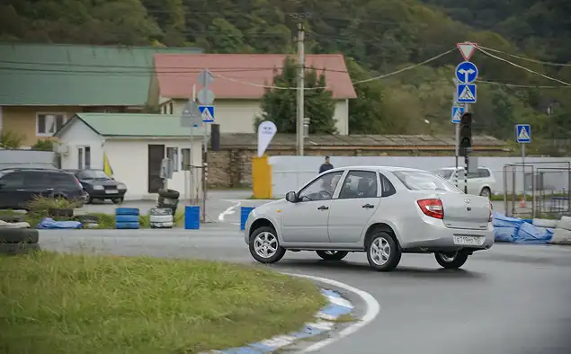 Даже в руках тольяттинских испытателей Lada Granta «едет боком» совсем неохотно.