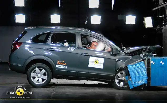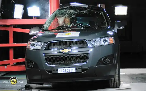 Схожие с BMW 1-Series результаты показали кроссовер Chevrolet Captiva: безопасность пассажиров при фронтальном ударе находится на хорошем уровне, но при ударе о столб также было зафиксировано чрезмерное давление на грудную клетку. За это испытание автомобилю эксперты выставили оценку «удовлетворительно».
