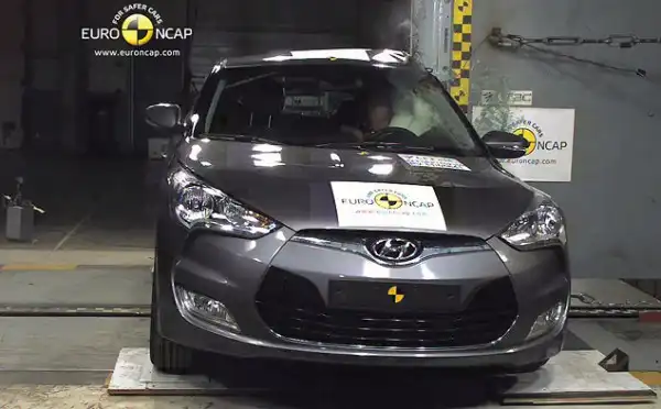 Асимметричный хэтчбек Hyundai Veloster заработал максимальные оценки в обоих видах бокового краш-теста, при столкновении сзади, а также показал хорошие результаты при фронтальном ударе. В этом случае водитель и пассажир полностью защищены, за исключением голеней, которые соприкасаются с центральной консолью. Защита этой части тела была оценена на «четверку».