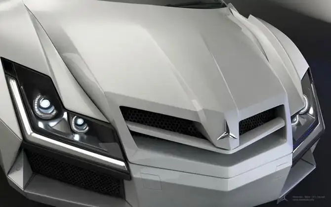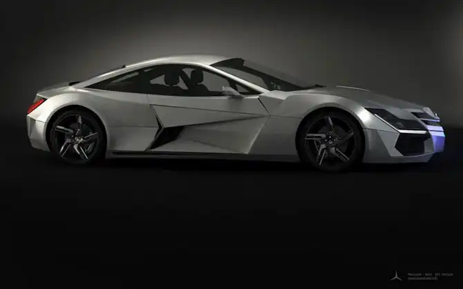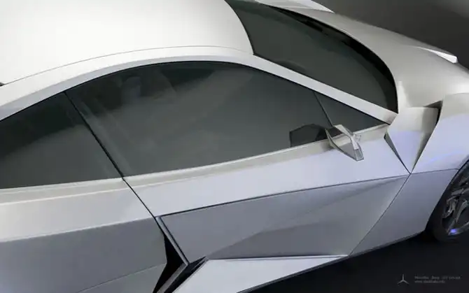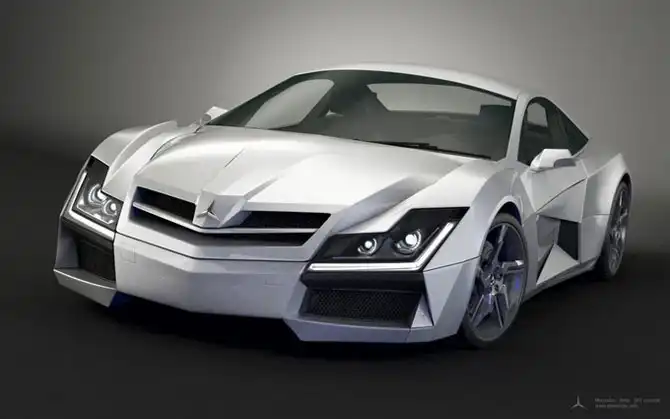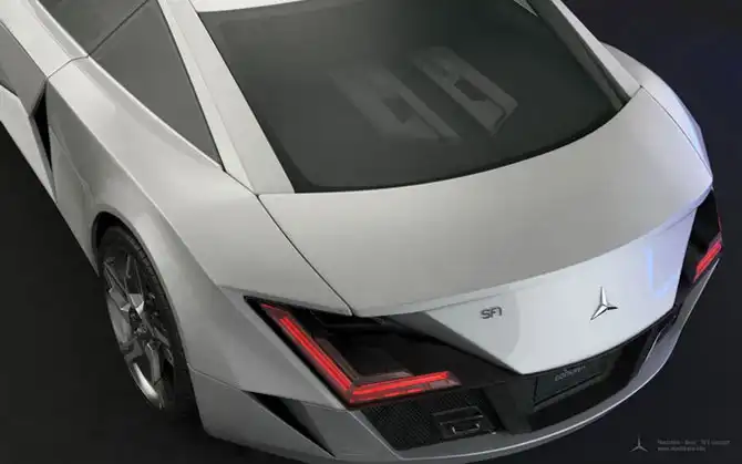Mercedes SF1 – это смешение привычных форм немецкой марки Mercedes с ультра-геометрическим стилем, заимствованным у Lamborghini. Автомобиль представлен дизайнером Стилом Дрейком (Steel Drake).
