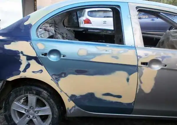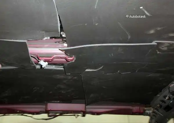 Донора синего прикладываем вместе с дверью целой - и пытаемся подогнать их, выставить зазорчики (сильно мешает крыша уехавшая)