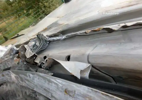 Даже вот так - высокохудожественно - авария раскатала металл стойки