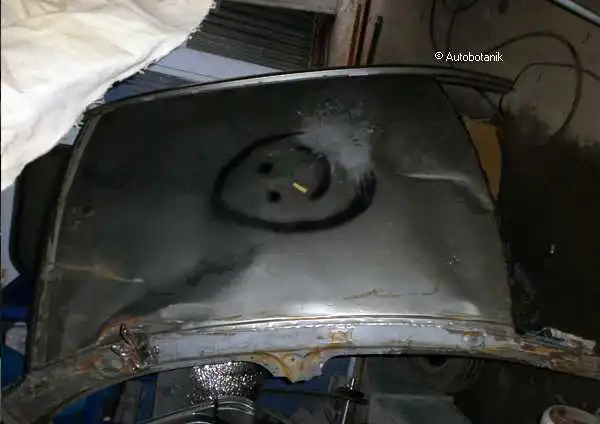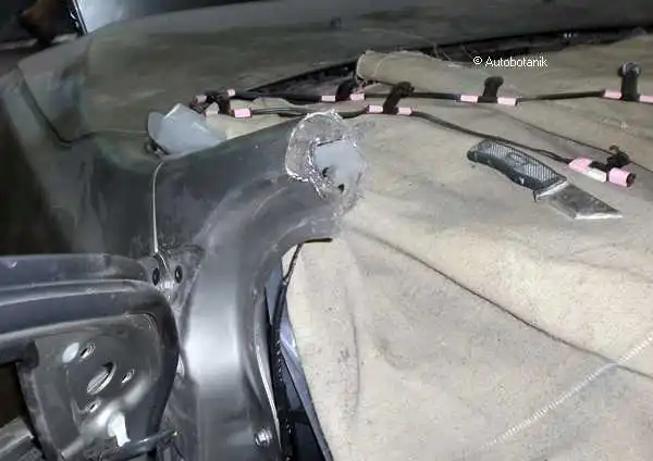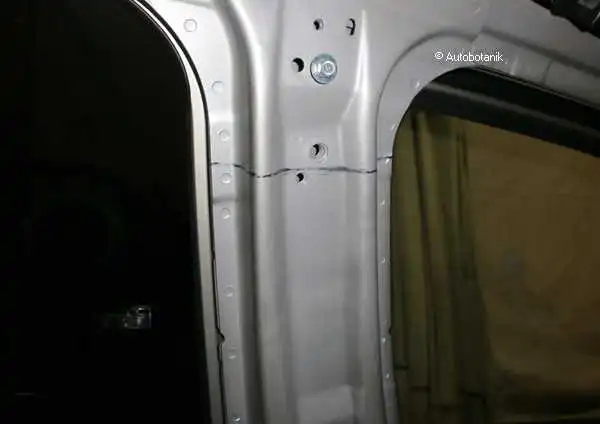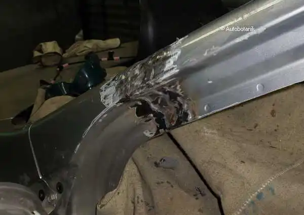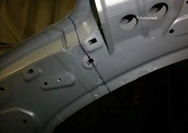 Сварные точки (по которым отсверлили мятое крыло - вот виднеются на торце суппорта фонаря)