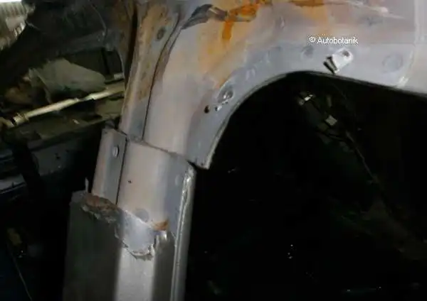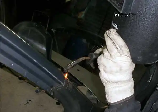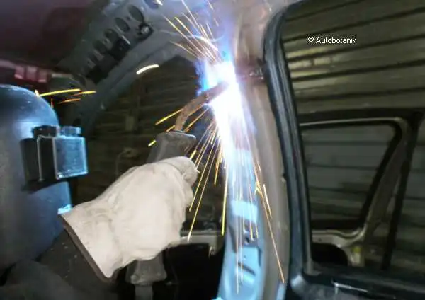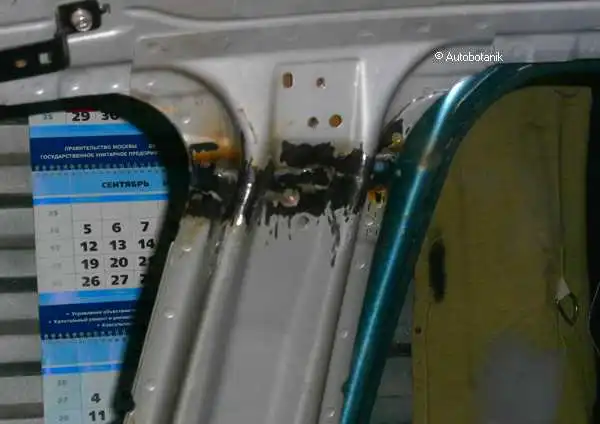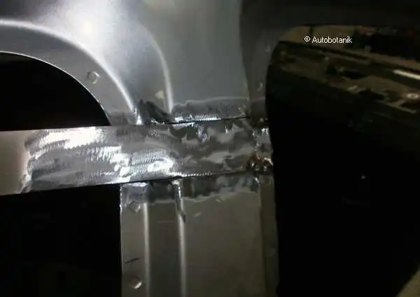 Идём сваркой по проёму двери - вот какая ровная стыковка крыла синего с порогом-проёмом кузова