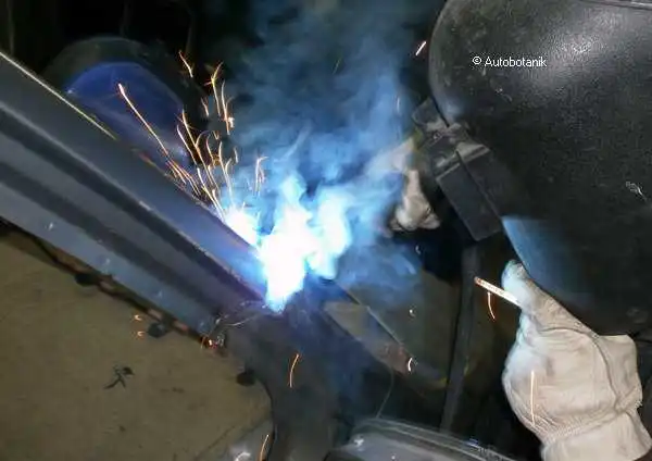Наконец, провариваем точки по торцу суппорта правого фонаря - всё как на заводе