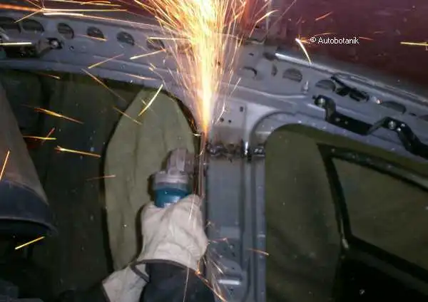 Мы не будем ходить вокруг да около долго - берём болгарку и машина лишается своей мятой крыши