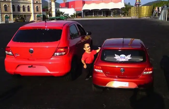 Volkswagen позаботился о людях, которых природа обделила ростом - о карликах. Они создали уникальный автомобиль Mini-Gol, в котором человек маленького роста чувствует себя вполне комфортно. Машина всего 2,25 метра в длину, а под капотом у нее находится двигатель с мощностью 5,5 лошадиных сил.