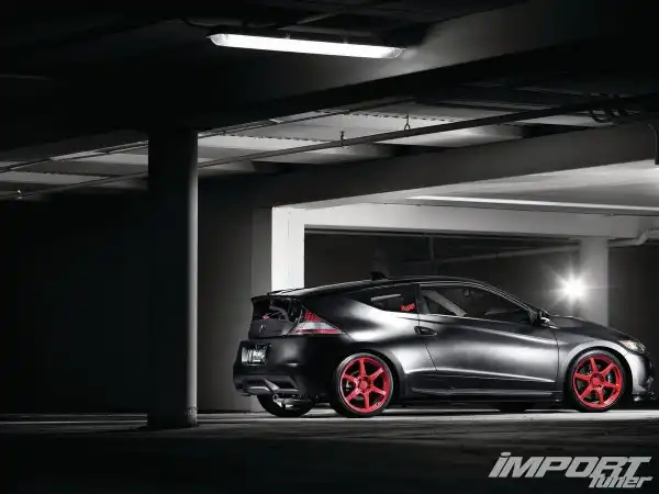 Далее он поведал о концепции данного проекта, заключающегося в привлечении внимания к той нотке веселья, что заложена в самой идее Honda CR-Z. Оригинальные аксессуары Honda он сочетает с аэродинамическими компонентами Rando/Tracy Sports Japan; все это дополнено специально разработанными для этого проекта деталями, придающими ему уникальность: агрессивность в сочетании со стилистикой OEM.