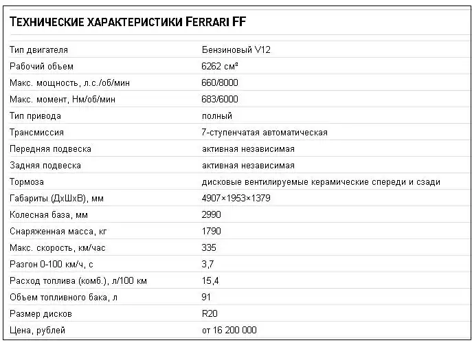 По большому счету – так оно и было. Только вкатился, только хоть что-то почувствовал, и уже нужно прощаться. Короткий спурт в три круга по трассе в Тушино – этого, конечно, недостаточно для того, чтобы говорить о полноценном тесте мощнейшей Ferrari да еще и с уникальной системой полного привода. Уникальной как для Ferrari (FF – единственная модель с полным приводом), так и для остальных – подобную трансмиссионную схему никто больше не предлагает).