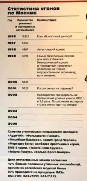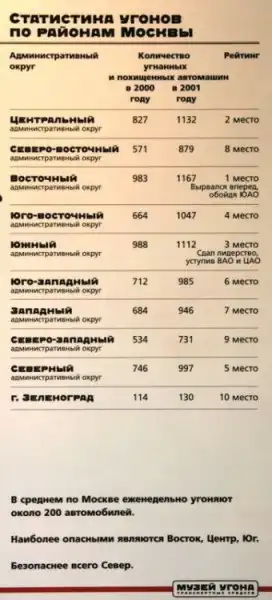 - статистика по угонам;