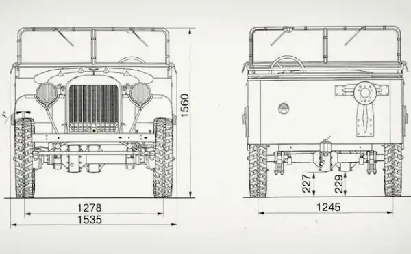 По техническим характеристикам Willys не имел принципиальных преимуществ перед ГАЗ-64. Клиренс – 22 сантиметра, мощность – 60 лошадиных сил. Максимальная скорость – 104 километра в час.