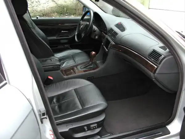 Большой салон (изобилие высококачественной кожи и отделки ценными породами дерева), в котором задние пассажиры могут даже вытянуть и размять ноги (особенно в удлиненной на 140 мм версии iL), выполнен в традиционном для германских производителей деловито-сдержанном стиле. Традиционно прекрасная на BMW компоновка водительского места (с "памятью" индивидуальных регулировок сиденья), органов управления и подсветка приборной доски производят приятное впечатление своей законченностью. Седан отличает вместительный (500 л) и весьма удобный багажнике низкой кромкой. В число опций вошли такие "штучки", как подогрев обода рулевого колеса, спутниковая система навигации GPS, телевизионный монитор и высококлассная фирменная аудиосистема BMW top Hi-Fi system с десятью динамиками и СD-чейнджером на 6 дисков в багажнике. Решением проблемы парковки при маневрах в стесненных городских условиях стала автоматизированная система парковки, при включении которой автомобиль сам заруливает на свободное место стоянки. Подвеска "семисотки" настолько прочна и надежна, что свободно выдерживает все превратности судьбы даже на отечественных колдобинах.