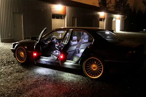 В конце 1998 г. прошла существенная модернизация "семерок". "Семерки" 1999 модельного года можно узнать по округлым "нижним векам" и более узким указателям поворотов. Задние фонари тоже стали чуть иными. Изменился дизайн легкосплавных колесных дисков, расширилась палитра цветов кузова, на крышке багажника появилась хромированная полоска, в дверные ручки теперь вмонтированы лампы, которые вспыхивают после разблокирования замков с пульта дистанционного управления на ключе и в течение двадцати секунд освещают не только сами ручки, но и асфальт под ними. В стандартное оснащение вошел гидропривод крышки багажника. За доплату можно получить систему контроля давления в шинах RDC (аббревиатура от немецкого Reifen Druck Control), которая постоянно измеряет давление в каждой покрышке (в том числе и запасного колеса) и в случае отклонения от заданных параметров немедленно информирует об этом водителя. Еще одна электронная новинка - система DBC, Dynamic Brake Control. В случае экстренного торможения, которое электроника опознает по скорости перемещения педали, система самостоятельно увеличивает давление в тормозной системе до максимального, что нерешительному или физически слабому водителю поможет сэкономить несколько метров тормозного пути. Баварские инженеры не стали ставить на свои автомобили систему первого поколения, в которой исполнительный механизм дотормаживания размещается в вакуумном усилителе тормозов, а дождались второго поколения.