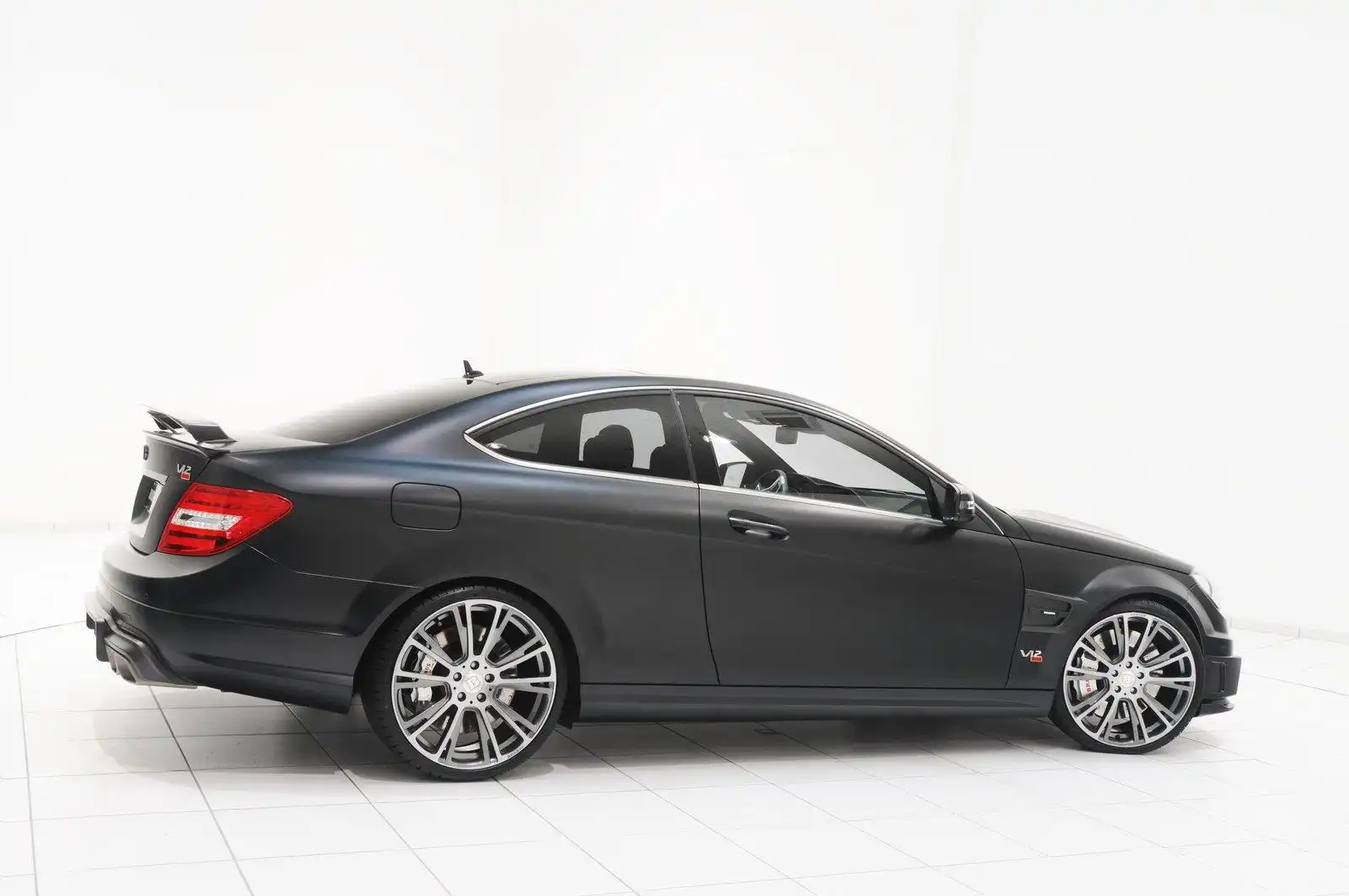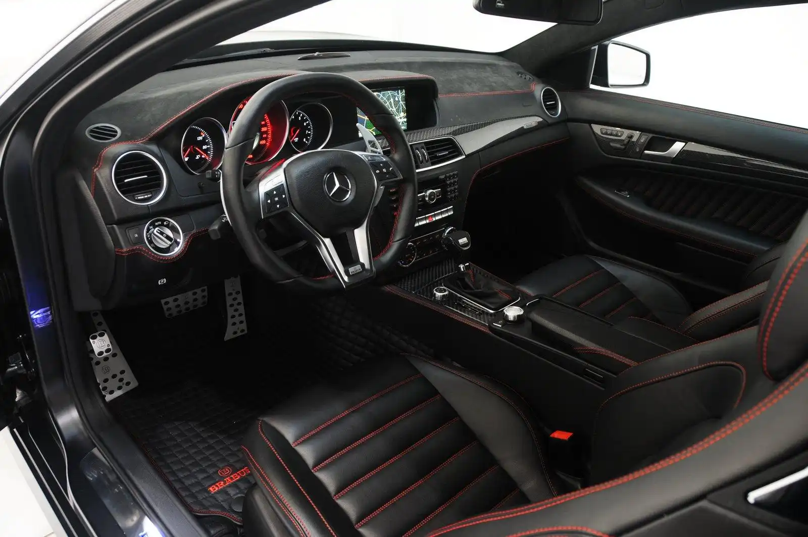Как раз к автосалону в Женеве, тюнеры из ателье Brabus построили на базе Mercedes C63 AMG проект, который они назвали Bullit Coupe. Это один из самых мощных Mercedes`ов C-класса в мире, так как Brabus установил 5,5-литровый V12 от Mercedes S-класса, объём которого увеличили до 6,3-литров, а также установили два новых турбокомпрессора.
