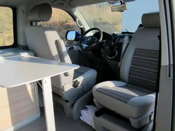 Передние кресла при этом оба разворачиваются, и вы можете устроить уютный завтрак на четверых-пятерых.