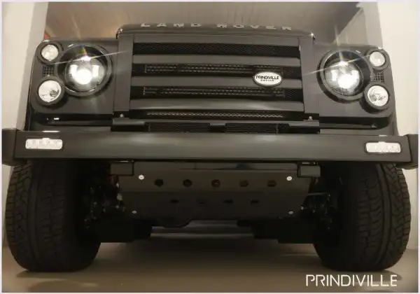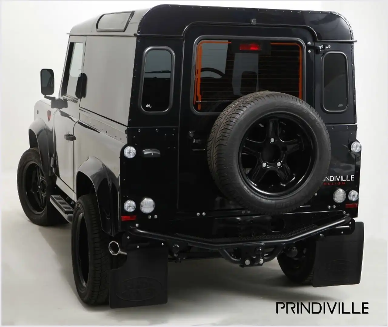 Для окраски кузова лондонские мастера тюнинга предложат владельцам Land Rover Defender огромную собственную палитру, состоящую из эксклюзивных оттенков, в том числе и матовых. Фары внедорожника были дополнены светодиодами и затемнены. Кроме того, в передний бампер были интегрированы светодиоды, тонированы задние стекла, установлены новые 18-дюймовые черные колесные диски, которые скрывают высокопроизводительную тормозную систему с 6-поршневыми суппортами, установлены защитные детали кузова, покрытые темным хромом, а на передних крыльях и в задней части появилась символика ателье Prindiville. Внедорожник также имеет спортивные титановые патрубки выхлопной системы и иную подвеску.
