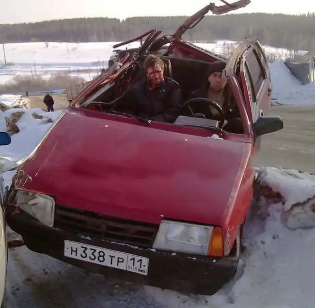 Не выдержав дистанции, он врезался в автомобиль МАЗ, после чего этот бедолага отлетел в снежный сугроб,