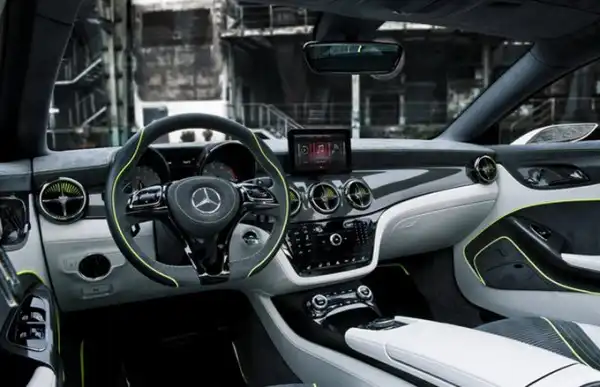 Интерьер прототипа выполнен в стилистике последних новинок немецкой марки - хэтчбеков A и B-класса.