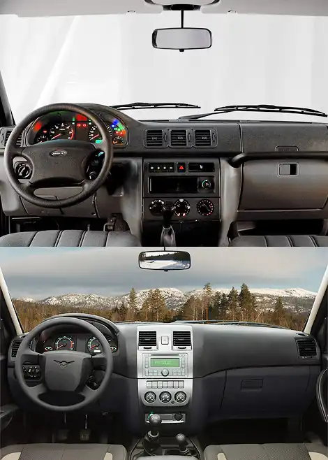 У «Патриотов» появился новый руль, поставляемый немецкой компанией Takata-Petri, модернизированная приборная панель и другая передняя панель, которая теперь выполнена из мягкого пластика. Количество деталей в конструкции «приборки» по сравнению с предшественником снизилось на 30 процентов, что, по словам представителей «УАЗа», позволило снизить шум в салоне при движении автомобиля. Кроме того, с пассажирской стороны исчез поручень, ухудшавший безопасность в случае аварии.